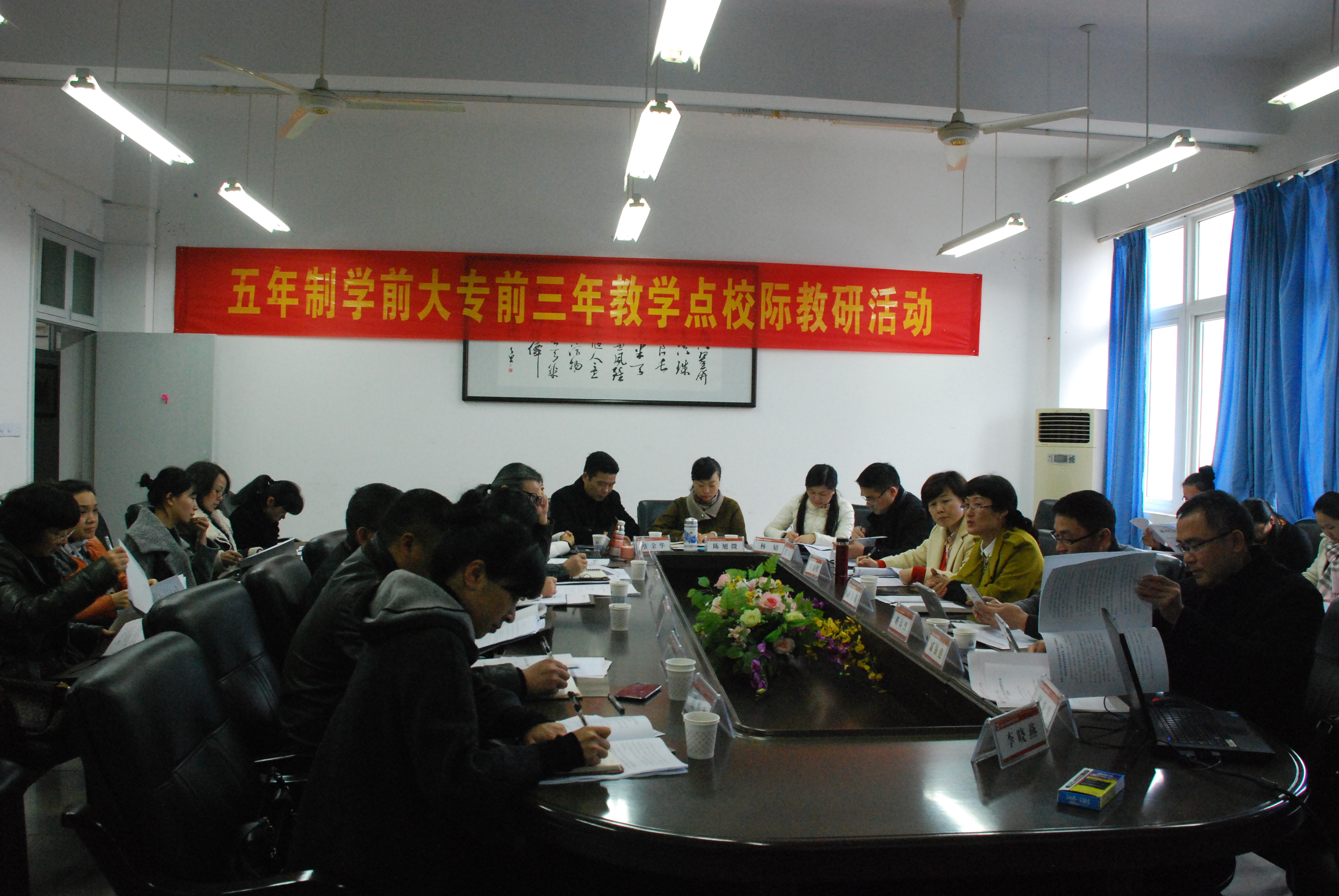 2015年1月5日下午2点,五年制学前大专前三年教学点校际教研活动在北校3-311如期举行。此次活动主题为“教研、科研双轮驱动,促进学前教师专业发展”,与会对象为williamhill官网学前系专业负责人及骨干教师,各教学点的主管领导,教务、政教、总务科室负责人及教研组长。
