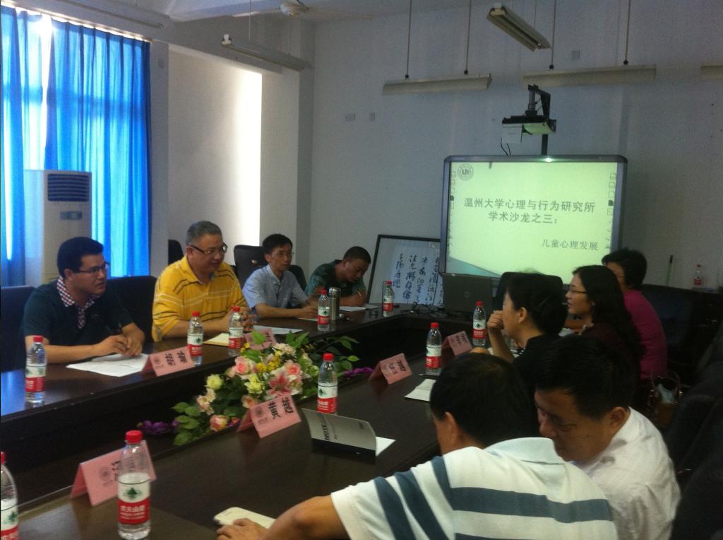 在交流的过程中,任越教授进一步表示此次来访不仅在于交流双方学术成果,更希望了解温州未成年人的心理健康与生活习性,以进一步完善市政府委托的调研课题。由于温州商人辈出、华侨较多,情况较之其他各地有很强的独特性,因此,任越教授一行对温州留守儿童的生活、学习方式与心理发展表示强烈好奇,并希望能够获得相关资料,完善他们此次的课题研究。结合自己的研究成果,心理所老师对于温州儿童的特殊构成与发展状况进行了一系列的说明,尤其对温州城市留守儿童的特殊情况与发展模式进行详细解说。
