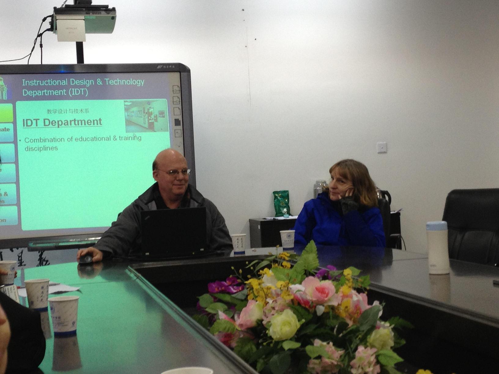 为了促进教育信息化研究所教师的科研能力,2013年1月4日下午15:00,教育信息化研究所在北3-311举办了“如何提高教师科研能力”为主题的学术沙龙活动。本次学术沙龙由教育信息化研究所所长胡来林教授主持,学院领导彭小明副院长与研究所的全体教师、部分研究生和本科生参与了本次交流活动。在这次活动中邀请了美国西伊利诺斯大学(Western Illinios University )教育技术系主任怀特( Hoyet Hemphill )博士和琳安达( Leaunda Hemphill )博士。在活动中,Hoyet H. Hemphill博士做了题为“An U.S. Program in Instructional Design & Technology: Preparing the Instructional Designers & Educational Technologists of Tomorrow”(《美国教学设计与技术专业:教学设计师培养的现状及展望》),并与本研究所教师就“研究生与本科生的培养机制、技术如何提高学生的学习能力、学生实践工作”等内容进行了深入的学术对话与交流。
