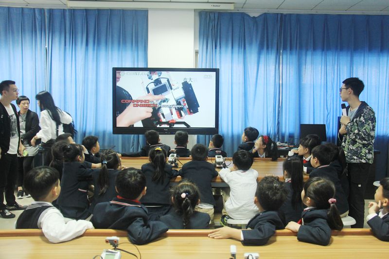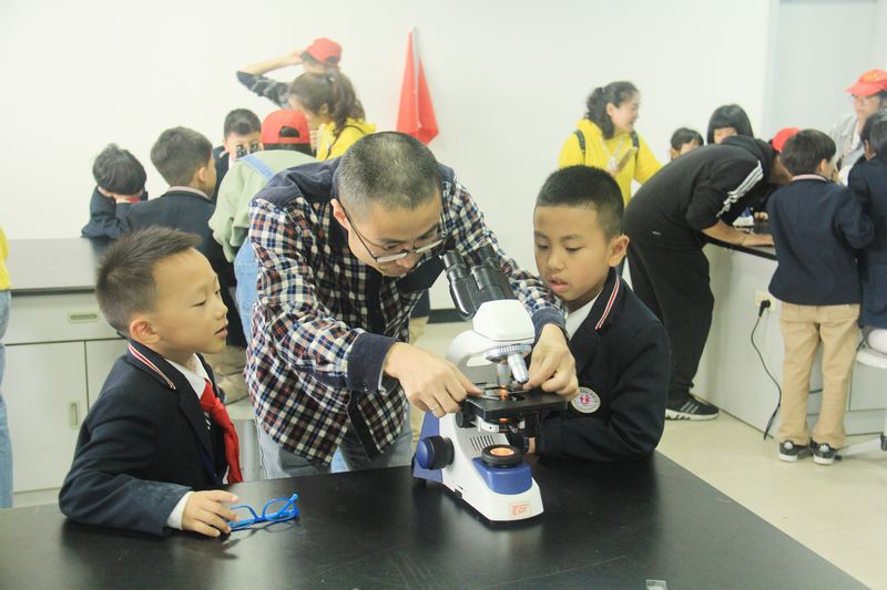 老师们将小学生分成5组,分批次体验各实验室活动。在蒙台梭利实验室,孩子们纷纷体验二项式、三项式、地图嵌板……玩得不亦乐乎;在奥尔夫实验室,他们拿起砂槌、棒铃、手鼓、响板等乐器来了一场即性“演奏”,感受各种乐器的美妙声音;在科学探究实验室里,他们观察显微镜下的神奇世界;在机器人实验室里,他们体验了智能机器人夹取、爬坡、投篮等运作全过程。整个活动十分愉快,直到上午12点小学生们才离开。实验室开放活动有效地利用学校资源,让孩子们体验了各种实验教学仪器,激发了他们对科学知识的兴趣。