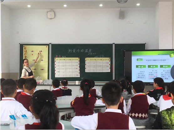 第一位展示的是陈茜茜老师,陈茜茜老师怀有身孕仍然面带笑容、教态落落大方地展示了一堂精彩的科学课,这让同学们非常佩服。陈茜茜老师的《测量水的温度》课堂为学生营造了轻松愉快的学习氛围,寓教于乐,学生在实验探究中不仅收获了知识和技能,更收获了探究的乐趣。