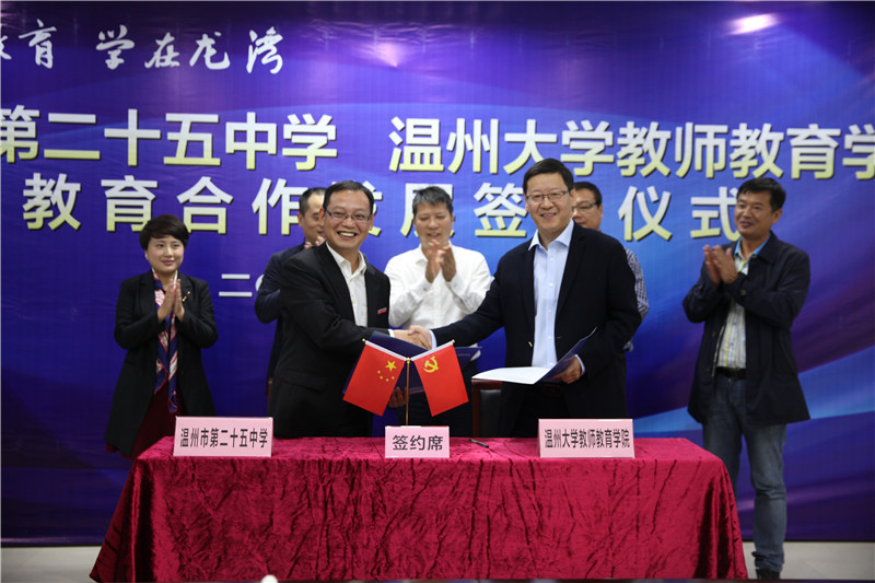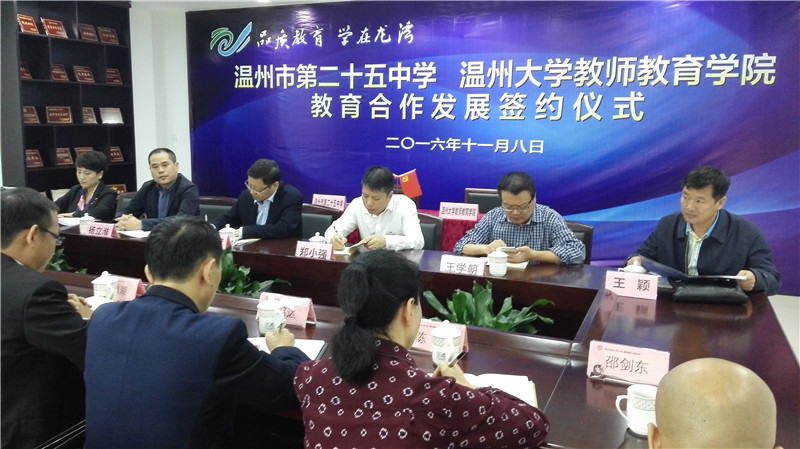 11月8日上午,我院郑信军院长、杨立淮书记及学院办公室主任黄玮赴温二十五中签订教育合作发展协议。龙湾区教育局郑小强局长、王学朝副局长出席了本次签约仪式,龙湾区教育局王颖副局长主持仪式。