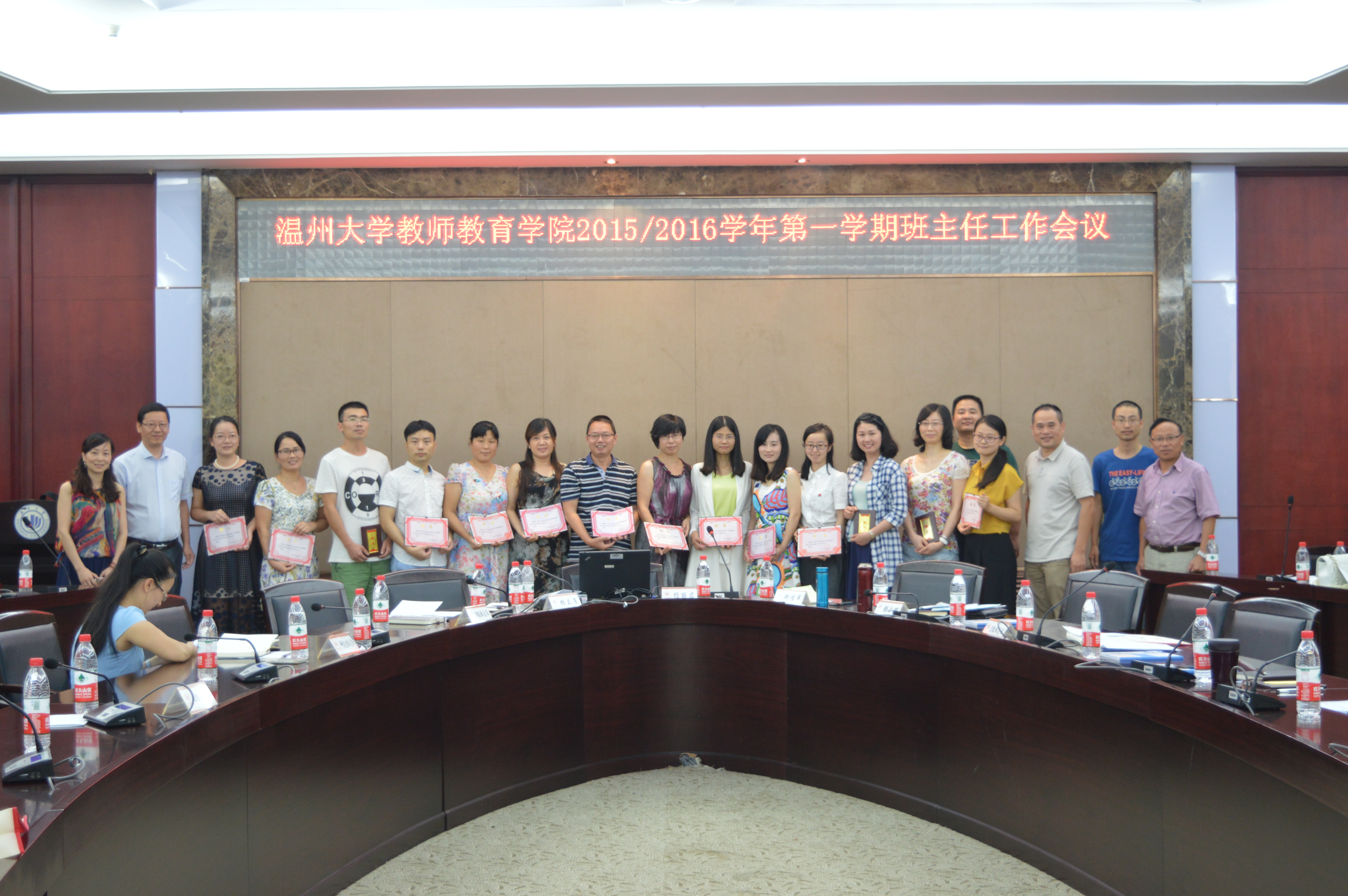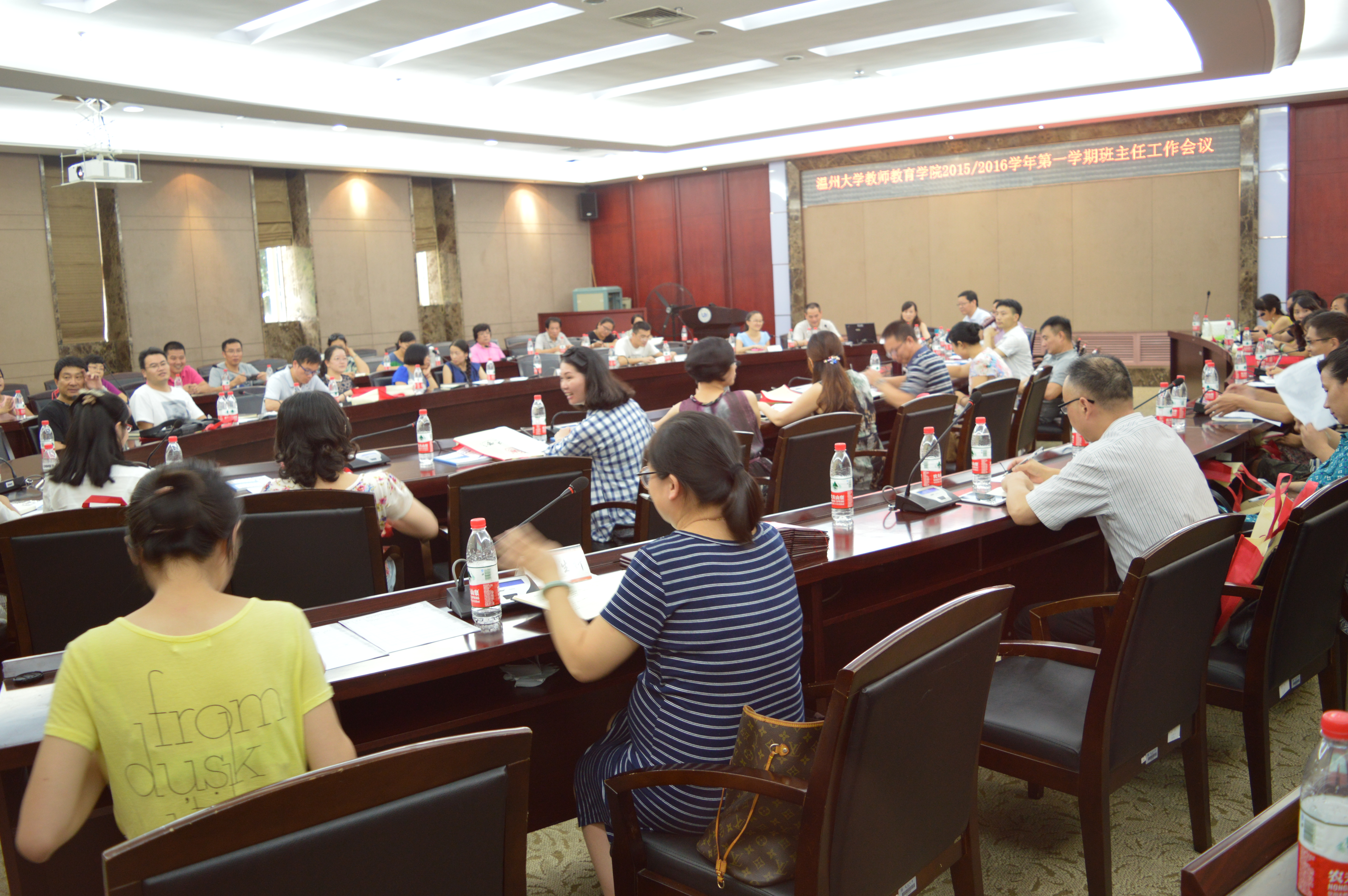 为了进一步推进学院学生专业成长和思政工作,我院于2015年9月4日召开了新学期班主任工作会议,学院院长郑信军、党总支书记杨立淮、副院长彭小明、党总支副书记杨丽君,学院2011级—2015级所有班级班主任及教学科、学生科工作人员近60人参加了会议,会议由杨丽君副书记主持。