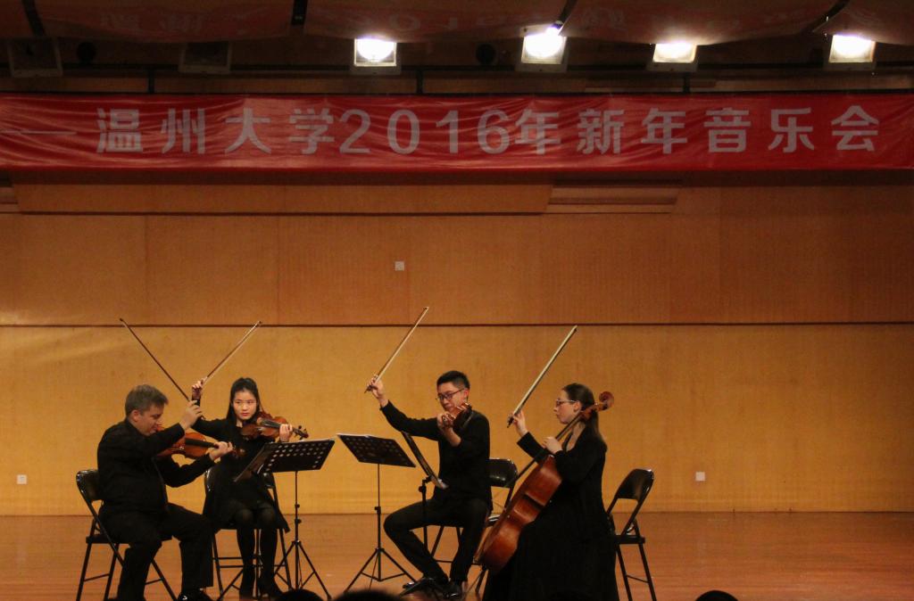 音乐会在主持人的精彩开场后正式拉开帷幕。第一首曲目是莫扎特的《弦乐小夜曲》,由哥特库米教授、龚弦、陈冠璋和席蒙娜巴尔布博士倾情演奏。乐曲开篇,开门见山,以活泼流畅的节奏和短促华丽的颤音,组成了欢乐的旋律,简单而充满了明朗有力的情绪色彩和青春气息,给人充满信心的感觉,给人留下难忘的印象。整个乐曲节奏明快、旋律生动、简洁利落和富有推动力,充分显示了演奏家们的高超技术,带给了在场观众一场无与伦比的听觉盛宴。