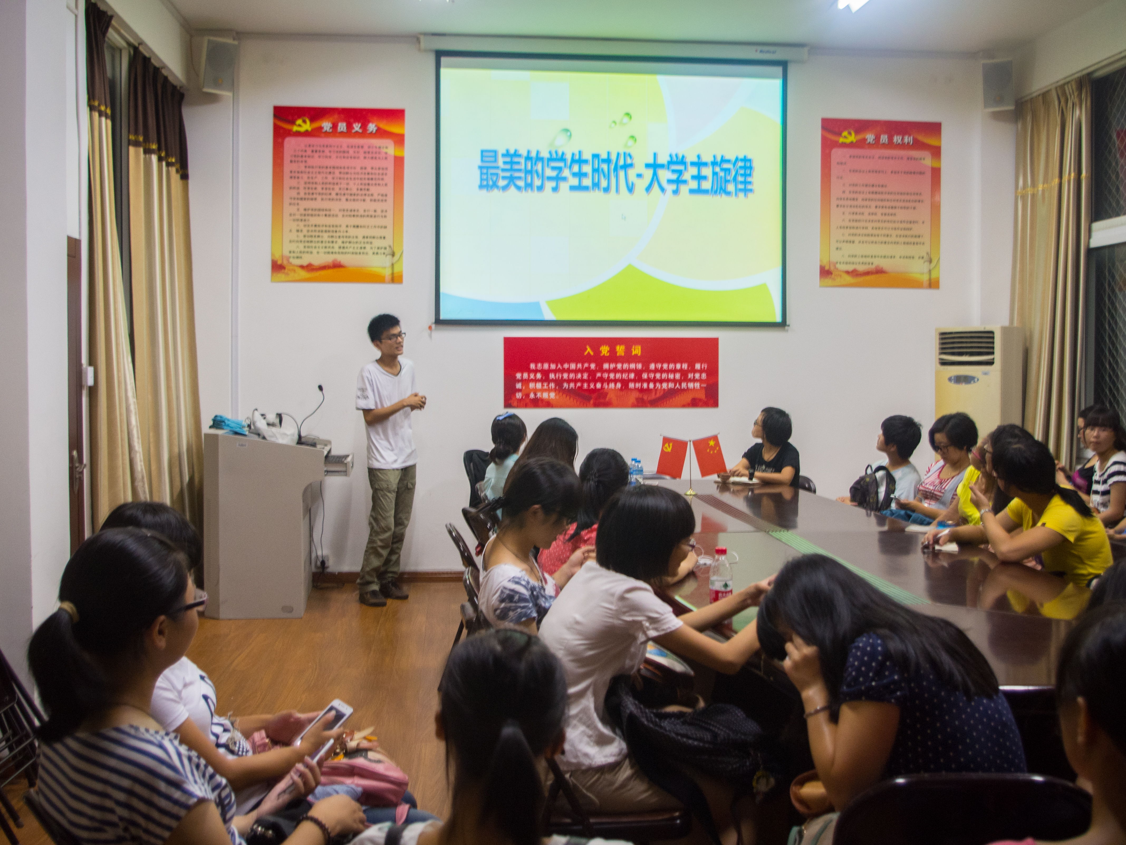 9月23日星期一在William威廉北校三号楼党员之家举行了一场“与理想对话”——13应用心理新生始业教育。10教本、10应心四位学长学姐与13级新生开展了深入交流。