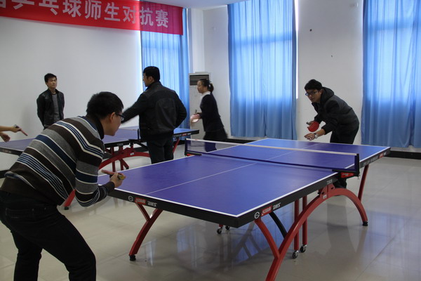 总结第一届师生对抗赛的经验,比赛井然有序地进行着。首先师生团体对抗赛,比赛双方各派出了三名男单、一名女单和一对混合双打选手。通过激烈的竞争,最终教师队以3:2的成绩战胜了学生队。而更为精彩的是在比赛的第二阶段——师生组合双打比赛,即通过抽签由一名教师和一名学生组合成一对双打选手,比赛采用单淘汰赛制,最终决出冠亚季军。这一阶段的比赛进行得非常激烈,双方比分拉得非常紧,总是出现平局的情况,让旁观者们都看得很激动。比赛最后的高潮自然是冠亚季军地争夺,经过不断地比拼,还有师生间默契地配合,冠军最终花落朱倩云老师和张泽源同学组合,亚军有宋一帆老师和沈荣同学组合摘得,金荣乾老师和张杰同学组合获得了季军。