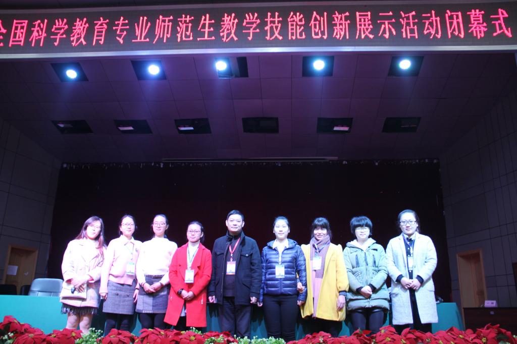 2015年12月18日至20日,由中国教育学会科学教育分会主办的“第4届全国科学教育专业师范生教学技能创新展示活动”在坐落于“天府之国”成都的四川师范大学举行。该赛事是我国范围内科学教育专业的最高级别的比赛,比赛分初赛和决赛两个阶段举行。我院由蔡志凌老师和朱伟老师带领,派出了12小教科学班的八位同学参加,在展示活动中荣获佳绩,共获得一个特等奖、一个创新奖、二个一等奖、二个二等奖以及三个三等奖的优异成绩。