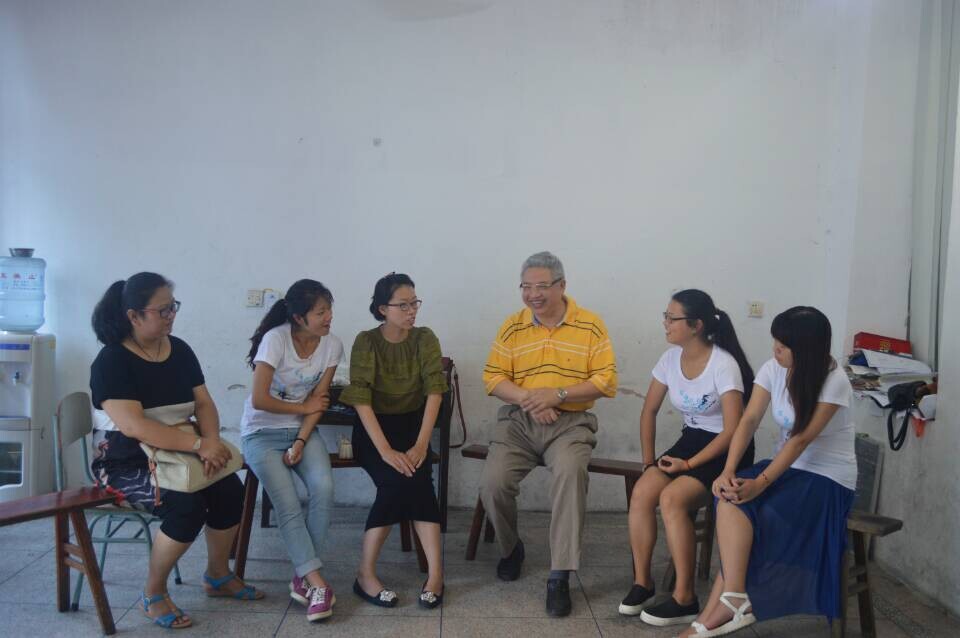 炎炎夏日,老师们给“古韵私塾”实践队送来了“清凉”的问候。他们面带微笑,亲切问候每位实践队员以及当地的带队老师还贴心送上了解暑的水果。随后,3位老师和队员进行面对面的亲切交谈。队员们向老师详细介绍了实践队的内容安排和遇到的一些状况,老师对实践队的古韵启蒙教育大加赞赏并提出了一些建议。潘院长指出要密切关注华侨留守儿童的心理发展问题,而古韵启蒙教育对这些孩子的重要性也十分突出。希望实践队员能抓住这次实践的机会,找准切入点,深入调查研究。