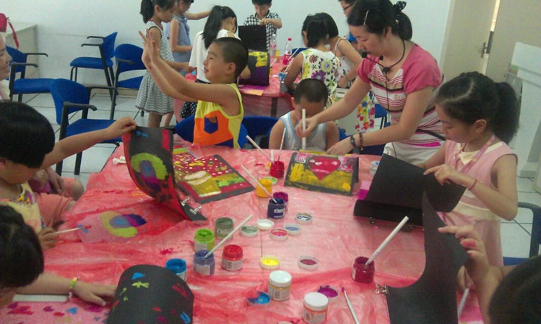 下午2:30,儿童手绘兴趣班开始了,老师早早地就到了。小朋友们陆续也来了。临近下午4:30,手绘老师帮小朋友修改他们的画作。接着,家长们接走了各自的孩子。队员们留在最后,整理了多媒体教室,关空调,关灯,关门离开。