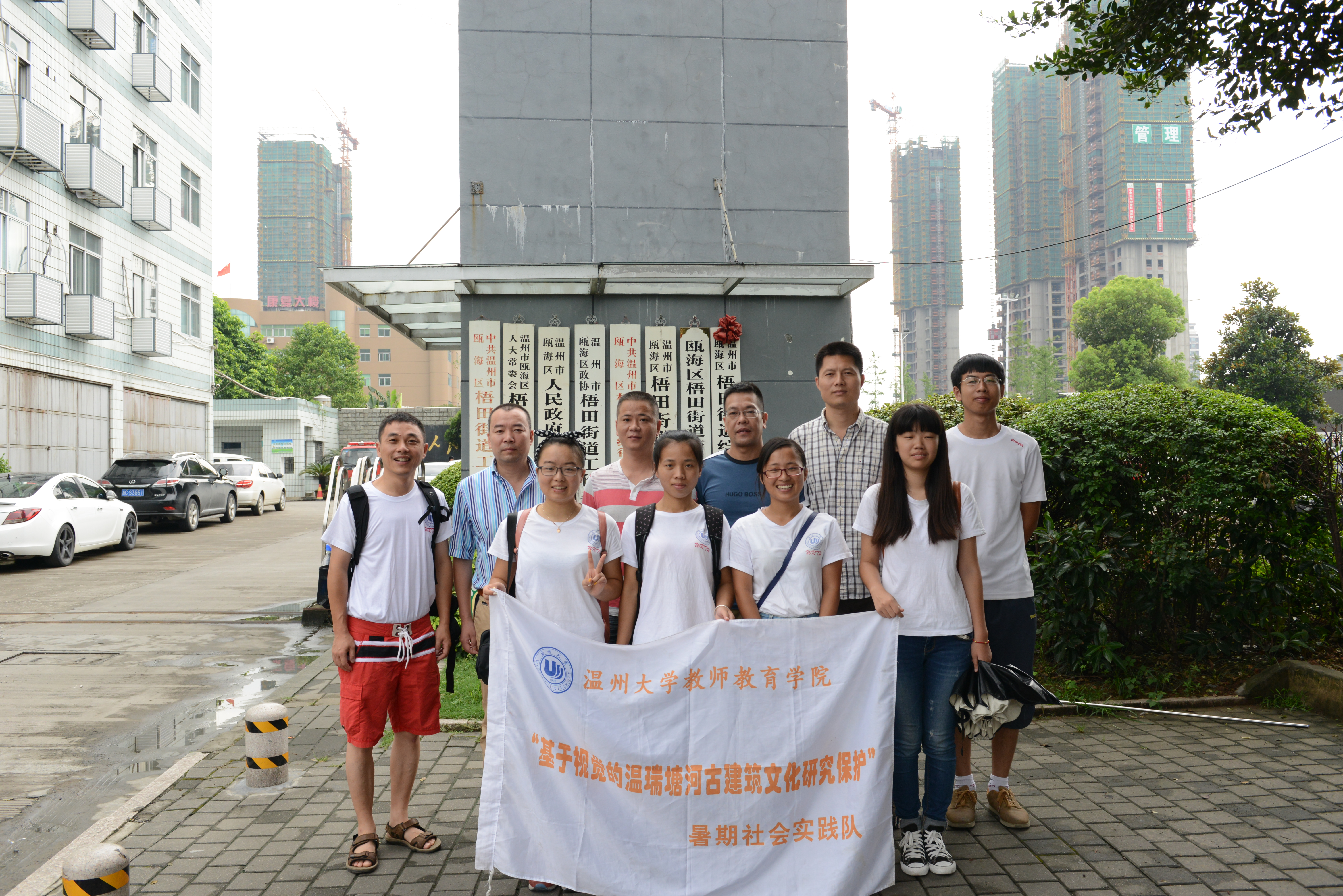 2014年7月14日8时许,williamhill官网温瑞塘河实践队部分队员与指导老师胡铸鑫坐上公交经过半小时的颠簸 到达瓯海区梧田街道,与塘河办相关领导进行了会面,同时实践队对塘河沿线古建筑的拍摄与对河流水质的保护等话题进行了深入的交流。