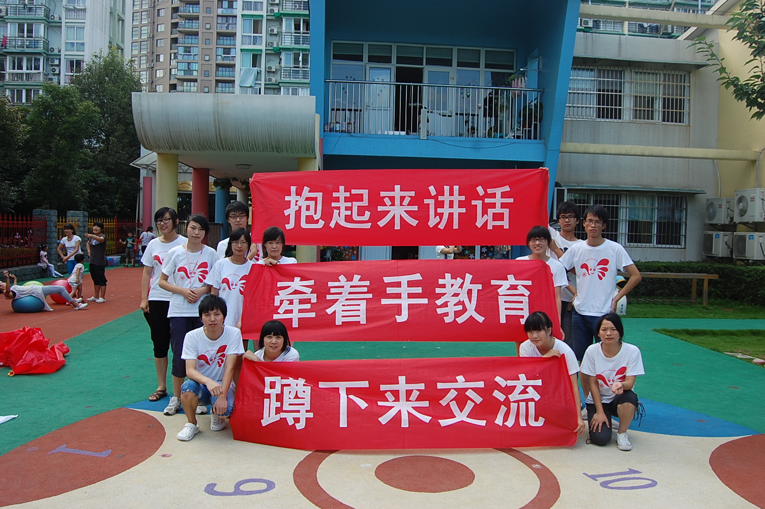 实际上今天是他们在幼儿园五天实践的最后一天,从他们与孩子们融洽的相处中可以看出来,他们与孩子们已经打成了一片。而今天是离别之际,大家都不舍了。