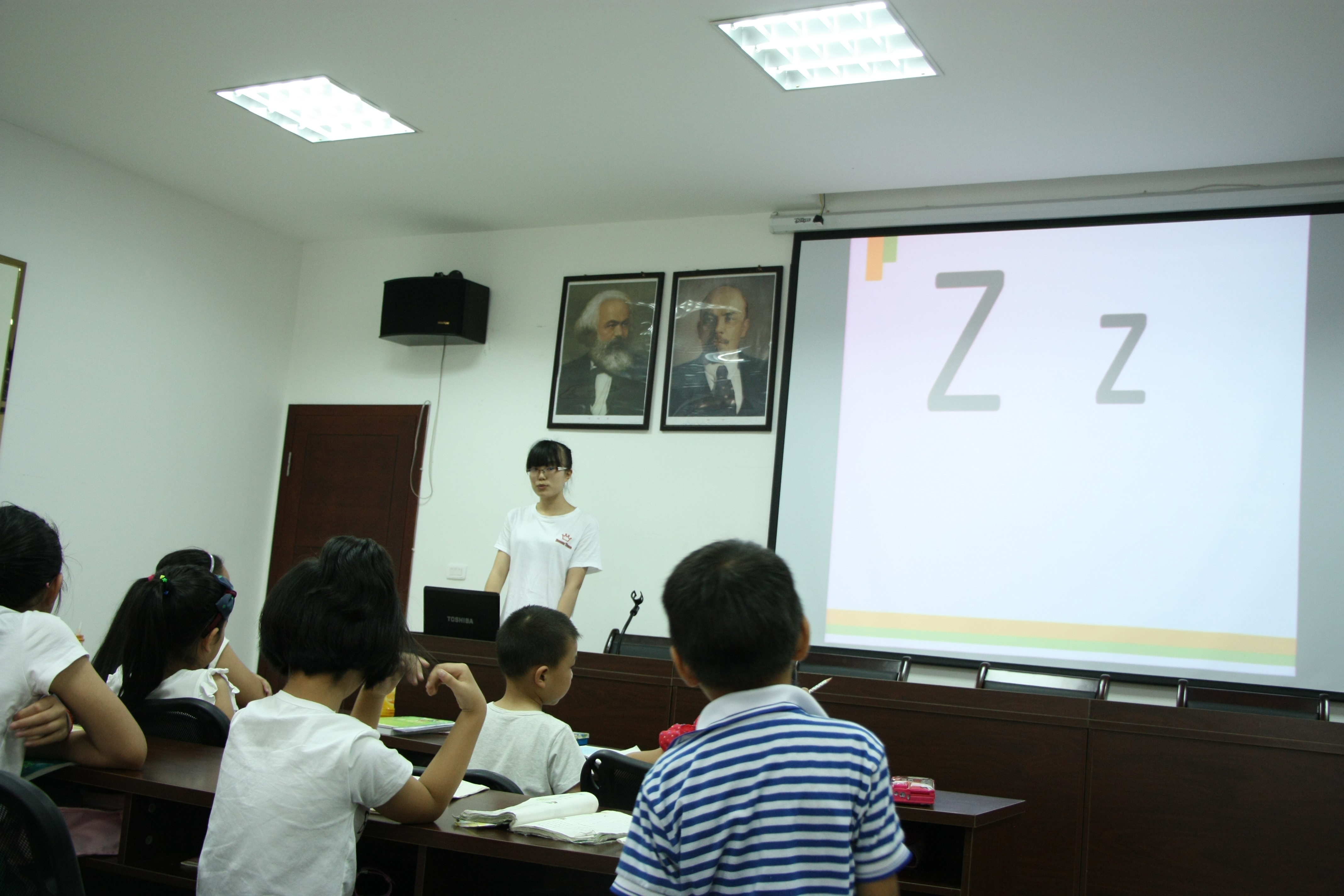 课程在九点准时开始,在会议室的灯光下,实践队的队长,在昨天晚上奋斗与准备下,给小朋友举行了趣味英语的活动,队长开头先教小朋友唱一首歌,歌声就回荡在会议室空气中,同时她给小朋友普及了动物和水果这些比较常见的英语单词,让小朋友在快要结束时候让他们回想那些学过的单词,在快乐的气氛中小朋友学习英语,在此同时队员们为了扩展小朋友们的兴趣爱好,给他们上了象棋课,希望他们学会下中国象棋,下象棋,不仅仅是知道怎么下象棋,同时也要知道象棋是怎么来的,为什么叫象棋,明白这些才可以说了解了象棋。为了他们能了更好的融进上课中我们还设置了奖品给他们。凡是上课答问题的都能得到一份小礼品。