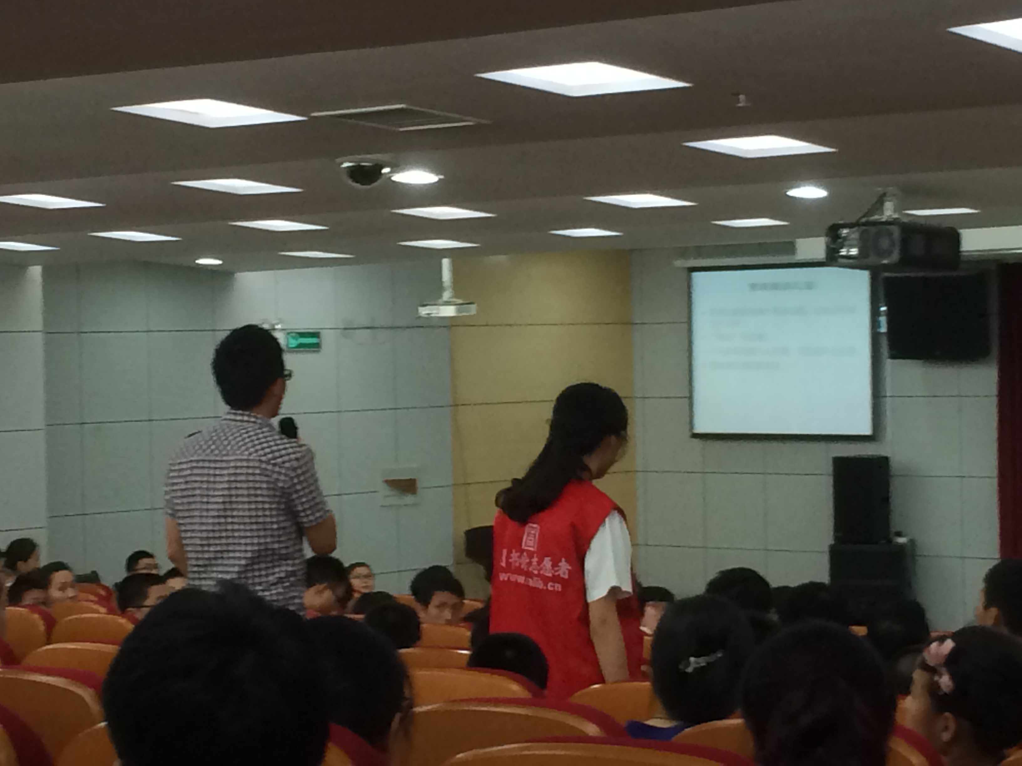 八点半,实践队队员们提前来到教室开始上课前的准备工作,摆放桌子和椅子,将材料搬进教室。并在这期间,做好学生的签到工作。对于没能及时到达的学生打电话询问。九点整,染布兴趣班正式开办,队员们首先分发给每位学生所需的材料,然后老师展示一遍该如何缠布后。底下的学生与家长合作共同完成,同时,队员们也帮助没有家长陪同的学生一起完成。缠布完成后,由队员们收集学生用线缠好的布,将其放入特定的装满开水的水桶中。紧接着,再放入有染料的锅中烧煮……最后,将成品分发给每个人。在解开线后,每个人染的布的形状,颜色都不太一样,独自自己的风格。在之前的瑞安童谣兴趣班,国学经典亲子诵读兴趣班中,实践队队员的主要工作是负责签到,准备上课所需教材,配合老师上课。课后负责年龄较小的学生安全被家长接送并整理好教室等。每天都要发送第二天需要来上课的同学的短信。每天完成上课记录(图书馆方面)。如若当天上午或下午没有课程安排,则进行图书整理。最令人振奋的是姜鹏教授的《汉献帝是傀儡吗?》和阎崇年老师的《读书与人生》的两场讲座。队员们主要负责检票,接待老师,在互动环节,提供话筒给现场的观众。
