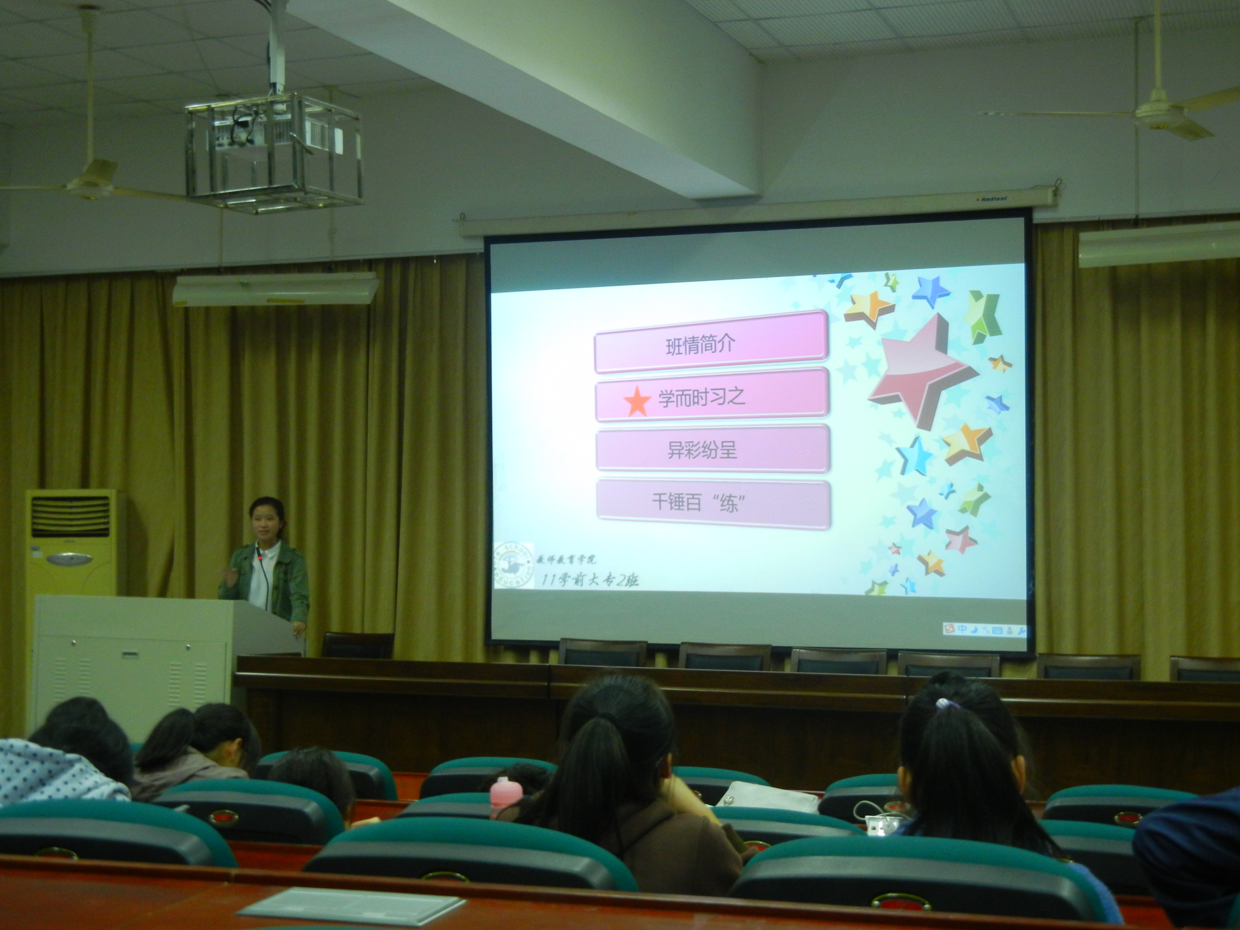 2012年11月22日晚七点,在3号楼101教室我院开展了williamhill官网院级的优良学风评选班评选。此次参加院级优良学风班评选的共有八个班级,值得一提的便是此次评比中首次有学前教育大专级段的班级参加。学前系11专2班凭借着自己班级的优良学风获得了在场学生评委的支持,成为了williamhill官网首个被评为优良学风班的大专段班级。这是一个在老师眼中以美女,才女,乖乖女组成的优秀班级。