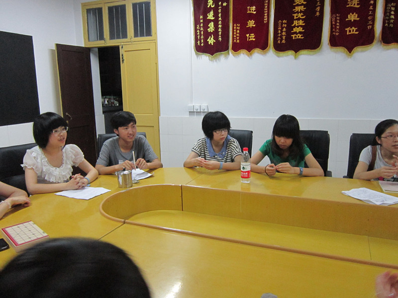在所有人到齐之后,会议正式开始。大会的第一项是讨论汇报演出的节目问题,大家就自己所教的课程提出了各项可行的计划,英语课演英语话剧,舞蹈课就表演舞蹈等等。大家各抒己见,气氛极其的热烈。一个个的节目被提上会议桌,大家对其进行分析,讨论可行性。经过长时间的讨论,初步的节目单订了下来,有包括合唱、舞蹈在内的精彩纷呈的节目。接下来就是关于通讯及感言的问题,因为大家对于感言的写作都不太了解,于是就借由开会的时间重申一下。感言的写作除了写出自己的真实情感之外,标题也是一个大问题。大家所写的感言,标题就是某某天的感想,这样的标题是不合格的。会议上一再强调,标题一定要另外再取,并要求大家尽量交出高质量的感想。最后一个议程是安岱后的问题,安岱后是丽水安民这里的特色,记录着以前革命时期的点点滴滴,我们所希望的就是能够从安岱后领略以前的革命情怀,更加了解今天幸福生活的不易。我们也会去拜访一位见证这段历史的老人,从他的口中明白那段尘封的过去。会议最终决定,我们利用周休去安岱后。
