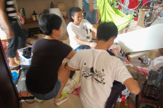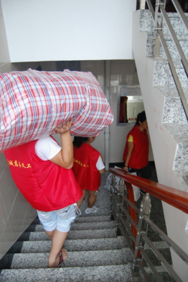 昨天下午起,队长黄唯佳陆续收到居民们的爱心来电与短信。今日上午十时,队员黄帅,吴瑞莹率先前往上田小区19,20幢楼,接受预约物资。令队员们印象深刻的是一位热心的阿姨,早早的便打开了大门等待队员们的上门。她整理了一大袋衣服,一箱书以及几双旧鞋子。到中午,已有不少爱心人士捐出衣物,书包,文具等物资,队员郭米,汪云杰前去帮忙。