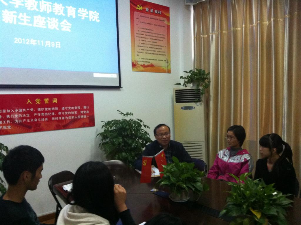 11月9日下午,新生座谈会在我院党员之家举行,彭小明副院长应邀出席会议。2012级新生入校已有2个多月的时间,同学们对于大学生活的适应情况是彭院长非常关心的问题,他认真听取了新生同学们所提出的大大小小共21个问题,有关小教专业分方向、后勤硬件设施、学区服务、学校体能测试、图书馆服务、早晚自习弹性管理、学习自主安排等问题,彭小明副院长针对这些问题给予了一一解答。他还与同学们分享了三点体会:1、学习知识要与增长才干相结合;2、学会学习要与学会做人相结合;3、结果与过程相结合。他希望同学们好好利用大学四年“写好自己的历史”,新生同学们受益匪浅。