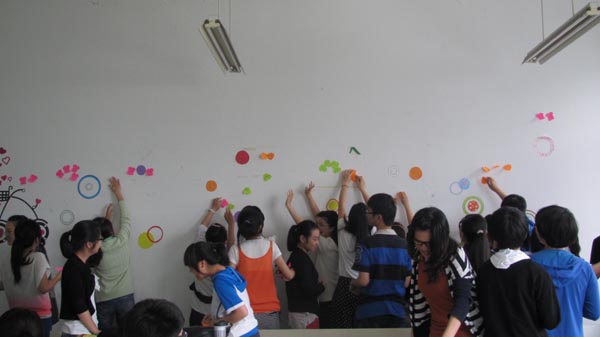 班会的最后我们把对班级的期待和自己能为班级做什么写在了便利贴上贴在了班级的后面,希望我们都能记住今天,记住我们定下的约定,记住我们相机里微笑的面孔,记住我们是一家人。