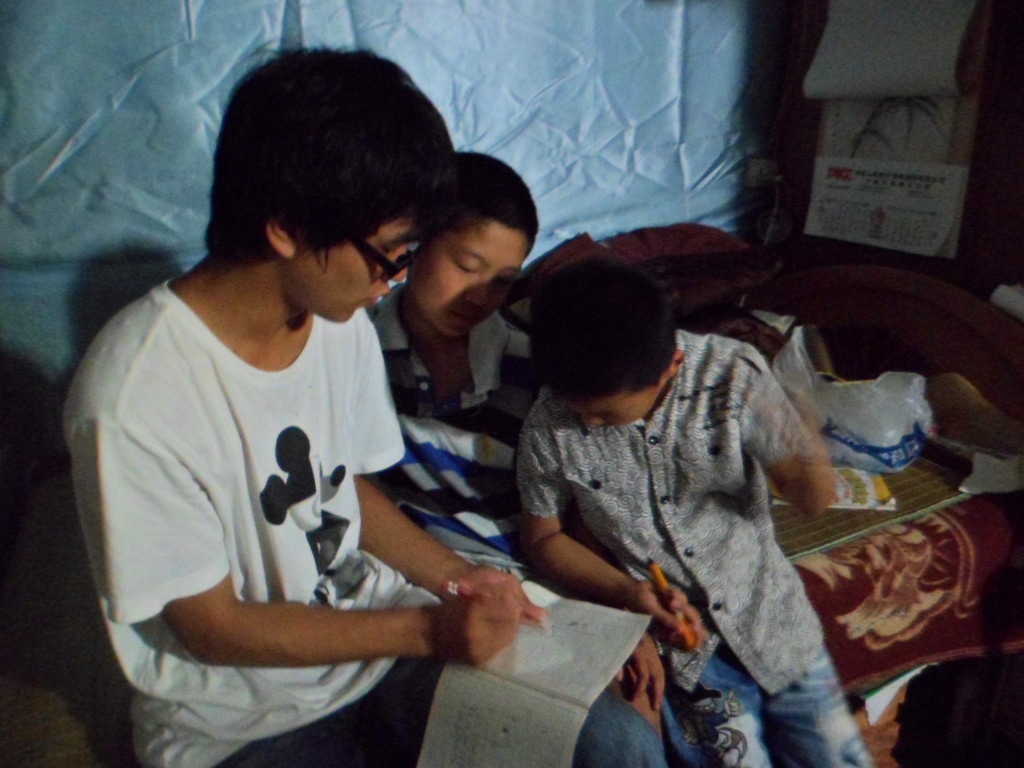 今天的安排和昨天相比,没有太大的改变,按照昨天晚上安排好的工作任务,大家依旧早起去各自孩子的家中,进行支教活动。但唯一不同的是大家似乎比前几天更有精神了,奇怪高温似乎没有使他们感到倦意,反而让他们热情满怀了?后来一问,才知道是因为明天就可以结束实践回家了,大家都很兴奋。