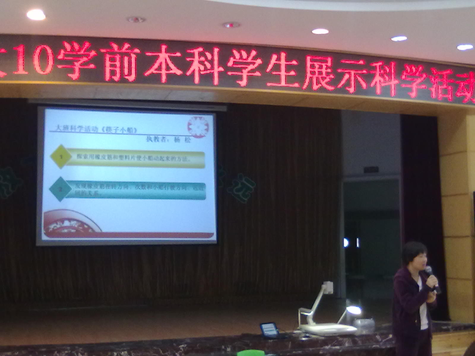 2012418日星期三上午,我们10学前本全体同学在戴聪聪老师的带队下去了温州市四幼进行了科学研习活动。