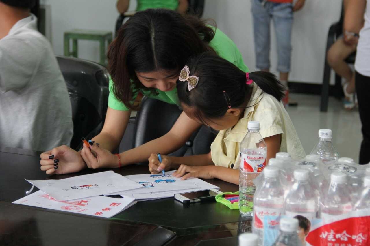 今天,安排的主要内容是画画。绚烂的色彩开出了繁盛的花朵,呈现着蓝蓝的天空,飘着洁白的云彩等等这些自然景物,更有成员教孩子们画可爱的叮当猫和调皮的蜡笔小新这些动漫人物。孩子们在画图中寻找到了乐趣,成员和孩子们玩的很开心,画图本上也记录下了彼此的交流对话。孩子们用彩笔画出了自己对于这个世界的定义,同时,队员们也在一旁认真地关注着,以便提供不时之需。有一个小女孩画了这样一幅画:画面上盛开着朵朵莲花,旁边点缀着莲蓬,这稚嫩的孩子赞美莲的纯洁,渴望成为莲花一般雅士。孩子们的绘画让队员们有着深深的感触,他们是“断翅”的孩子,但是拥有伟大的梦想。全体成员和孩子们待在一起的时间总是飞驰而过,一天的授课,不如说是相互学习的一天又过去了。