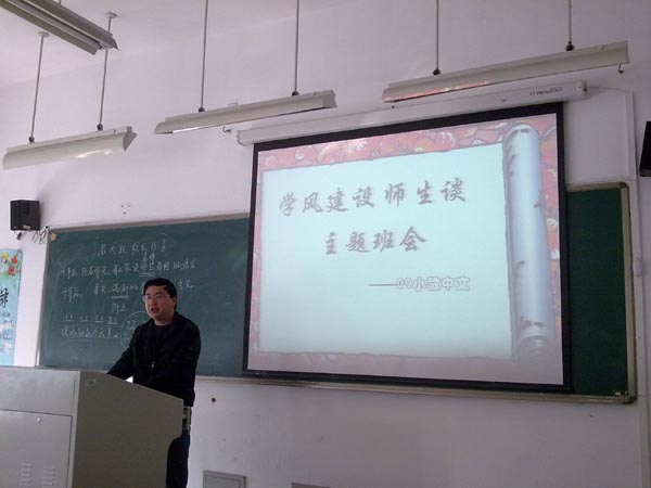 11月21日上午,09小教中文的同学和班主任张新老师在北校2-109教师举行了“学风建设师生谈”主题班会,大家畅谈了对本班学风建设的诸多想法。