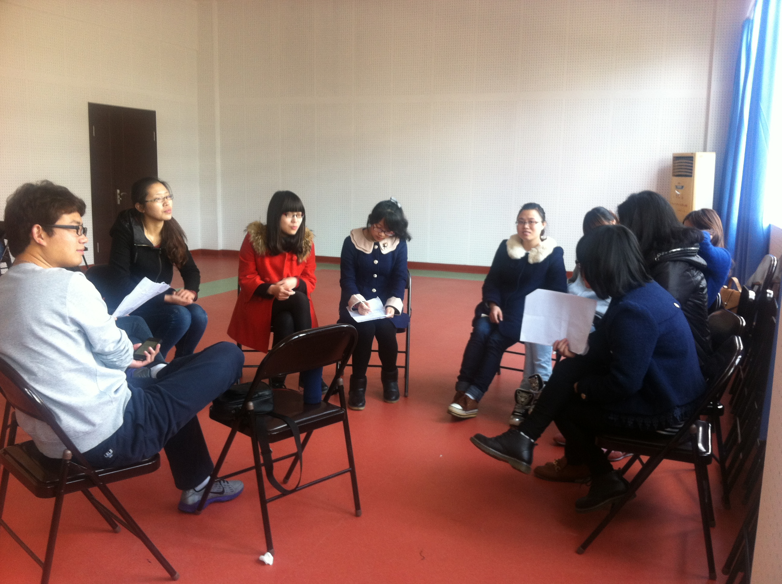 在前期准备上,我们班级分为四个剧组,每个剧组在一周内各自写出一个剧本,在郑老师的全面的点评、指导后,同学们认真完成了剧本的修改工作。同时,每个剧组的导演、演员、服装、道具、音乐和舞美等人员也依次确定。
