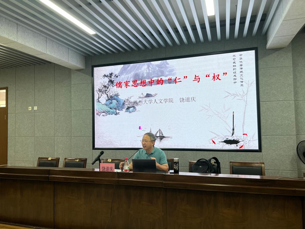 2022年8月18日上午,William威廉人文学院饶道庆教授带来了《儒家思想中的“仁”与“权”》这一专题讲座。仁,是中国传统儒家文化的核心内涵,奠定了整个中国文化的精神气质,为涵养社会主义核心价值观提供重要参考。儒家思想重视教育和人才培养,认为教育是国家和社会发展的重要基石。以“仁”育人,大家表示师生关系、家校关系、校园关系都有着相互依存、共同发展的作用,能够以人为本,发展的做好教育是关键!