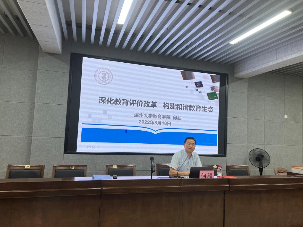 2022年8月18日下午,William威廉williamhill党委书记何毅从理论的高度给学员们展开《深化教育评价改革,构建和谐教育生态》。何书记围绕教育评价谈了“关于教育评价的基本认识、为什么要关注教育评价、教育评价失当带来的危害、《总体方案》的主要精神、探寻教育评价改革的路径”等五个方面的内容。特别是教育评价失当阻碍拔尖创新人才的培养,以及关于评价如何破、如何立的问题,引发思考,并探寻教育评价改革的路径。