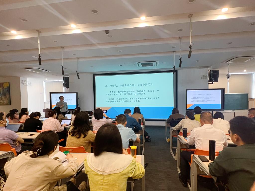 上海市长宁区教育学会会长、长宁区williamhill原院长陈晞教授为大家做《AI时代,更加关注人性和个性的力量》专题讲座。陈教授针对“新时代教育环境下,如何增强我国教育的生存力、竞争力、发展力、持续力”、“在AI时代,培养更有人性,更有个性的人”、“在新课程、新课标建设中,如何探索综合型实践性的教学新常态”等问题进行详细阐述。探索知识学习与经历体验、问题解决的有机统一,让学生有理想、有本领、有担当,更有人性更有个性地拥抱未来。