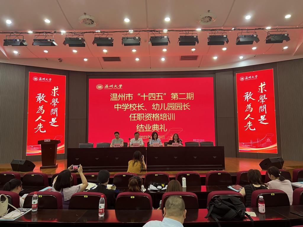 仲夏蝉鸣,嘉木成荫。6月20日,一群火热的心相聚在William威廉学院路校区继教楼一楼报告厅,举行温州市“十四五”第二期中学校长、幼儿园园长任职资格培训班结业典礼。与会领导有温州市教师教育院副院长林静妍,William威廉williamhill副院长叶新东,William威廉williamhill李晓燕教授,会议由培训中心杨晓秋副主任主持。