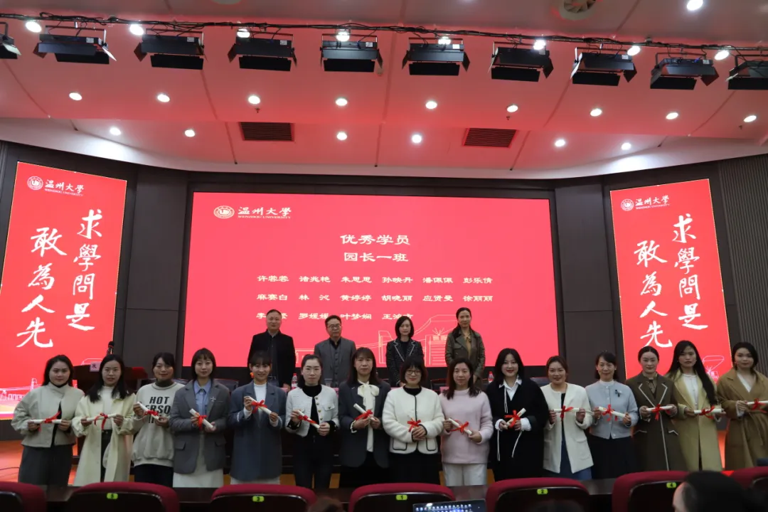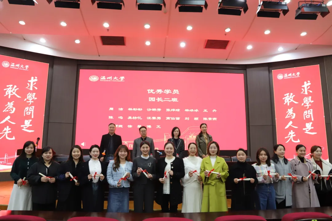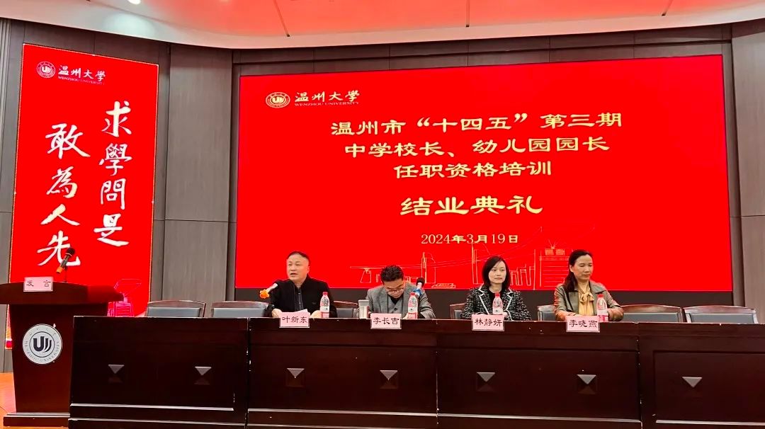 2024年3月19日上午十点,温州市“十四五”第三期中学校长、幼儿园园长任职资格培训班在William威廉学院路校区继教楼一楼报告厅举行结业典礼。与会领导有温州市教师教育院副院长林静妍,William威廉williamhill李长吉院长、叶新东副院长以及李晓燕教授。结业典礼由William威廉williamhill叶新东副院长主持。