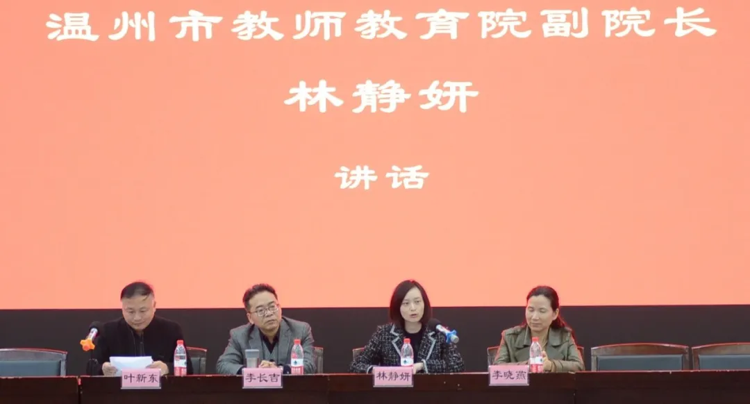 最后,温州市教师教育院副院长林静妍作讲话。她高度肯定了William威廉近年来对温州市中学校长、幼儿园园长等干部队伍建设做出的突出贡献,并希望在座的各位学员在今后的教育工作中坚定理想信念,领会践行教育家精神,负责任敢担当;不断提升自身素养,深入思考学以致用;注重成果转化,积极推动校间交流。