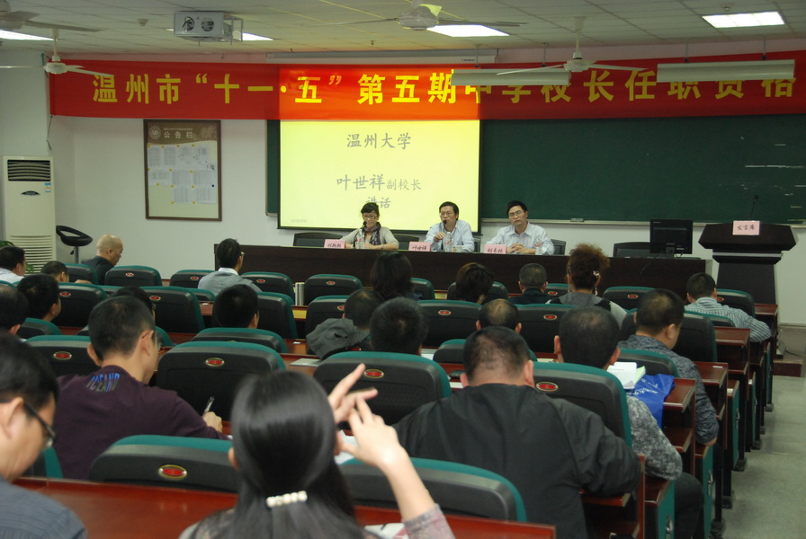 2010年10月19日下午,温州市“十一·五”第五期中学校长任职资格培训班开学典礼在William威廉学院路校区隆重举行。William威廉副校长叶世祥教授、我院常务副院长胡来林教授等出席了本次开学典礼。开学典礼由我院继续教育科林鹣鹣老师主持。