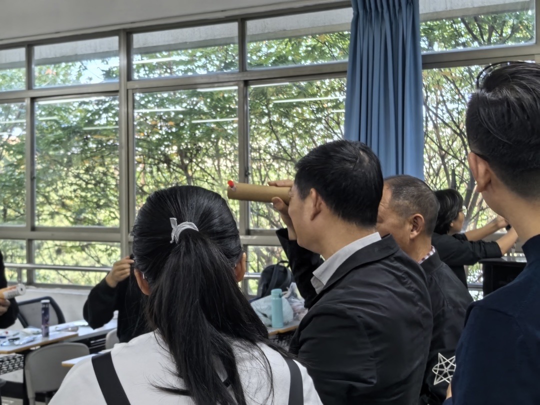 次日上午,在蔡老师的带领下,学员们开展了关于物质科学领域趣味实验设计与制作——“光”单元的部分实验教学与设计,并带着学员们共同制作了各具特色的万花筒。制作过程中,学员们将“光”的知识运用于实践,将理论与实践相结合。