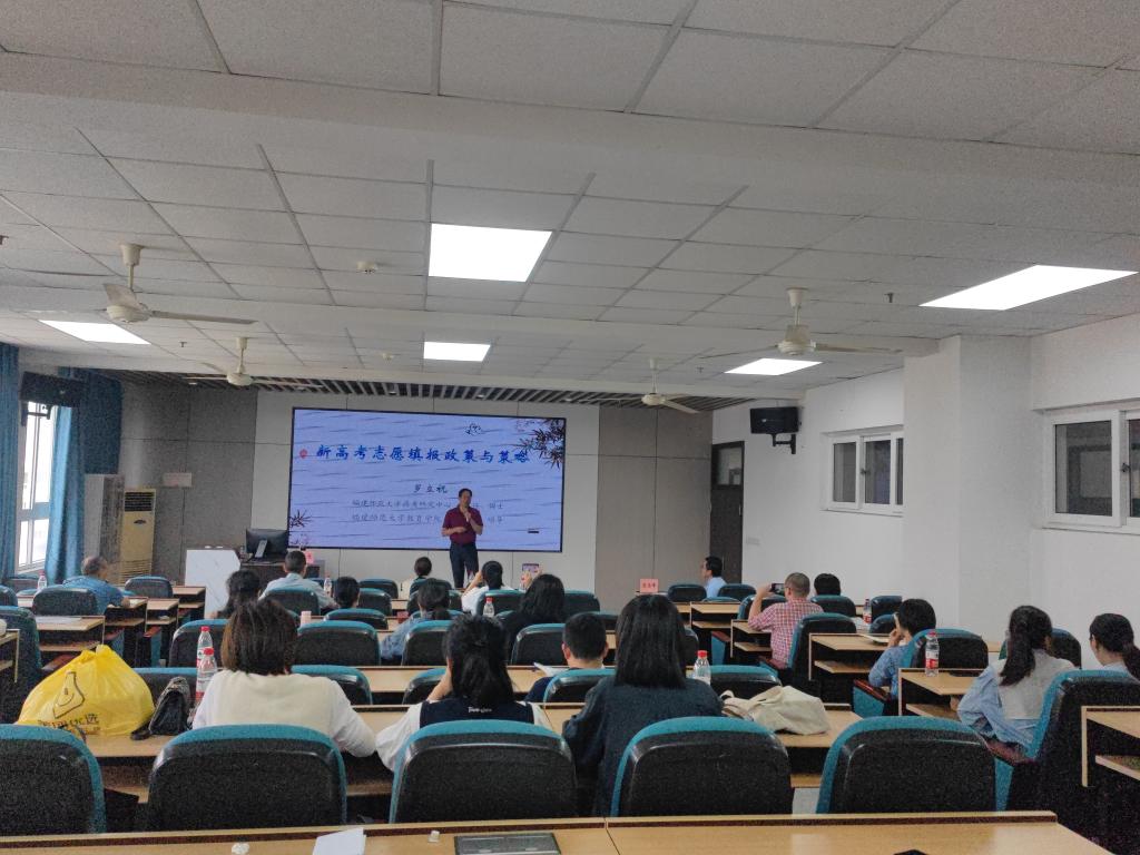 5月13日下午,福建师范大学高考研究中心副主任罗立祝博士围绕新高考招生录取政策、新高考志愿填报步骤、各批次志愿填报策略、千里挑一选院校、百花丛中择专业等方面,向学员们详细讲解了《新高考志愿填报政策与策略》,引发热烈反响。