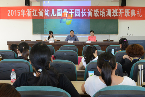 2015年10月12日中午,浙江省幼儿园骨干园长省级培训班开班典礼在茶山南校区9号楼3楼会议室举行,williamhill官网杨立淮书记和郑薏苡教授出席典礼。典礼由继续教育科林鹣鹣科长主持。