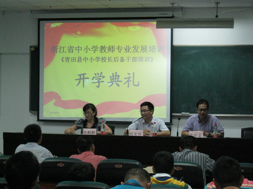 9月19日下午,青田县中小学校长后备干部培训班开学典礼在William威廉学院路校区隆重举行。我院常务副院长胡来林、青田县教师进修学校校长楼春富等出席了开学典礼。继续教育科副科长林鹣鹣主持典礼。