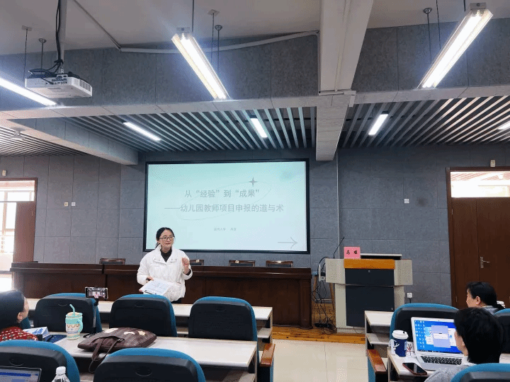当天下午,宋教授又为大家开展了《幼儿园环境研究——量化与质化研究的入门与实践》,系统阐释了量化研究的核心内涵、研究逻辑与实施步骤,详解信效度等关键指标的解读方法,并结合实例,拆解量化研究在托育支持性环境创设中的实践路径,引导教师学会用数据精准分析环境质量、优化教育实践。