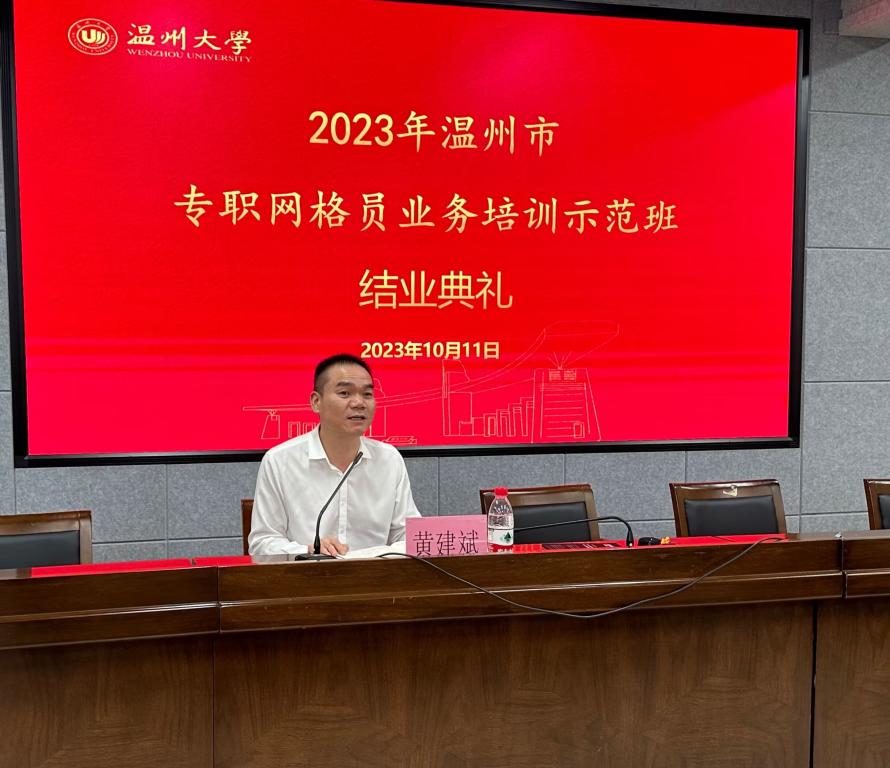 为进一步加强全市专职网格员队伍建设,推动全市基层社会治理工作,切实提升我市网络化社会治理水平,由中共温州市委政法委员会组织举办,由我院承办的2023年全市专职网格员业务培训示范班于10月11日顺利结业。市委政法委有关领导、学院相关领导和各县市区90名优秀专职网格员代表参加本次结业仪式。