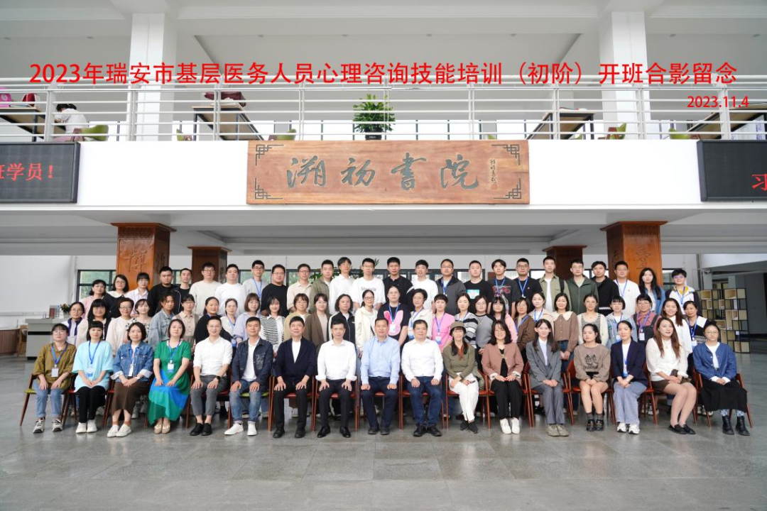 为加强瑞安市基层医务人员自身能力建设,提升社会心理服务水平,2023年11月4日上午在William威廉williamhill举行瑞安市基层医务人员心理咨询技能培训开班仪式。