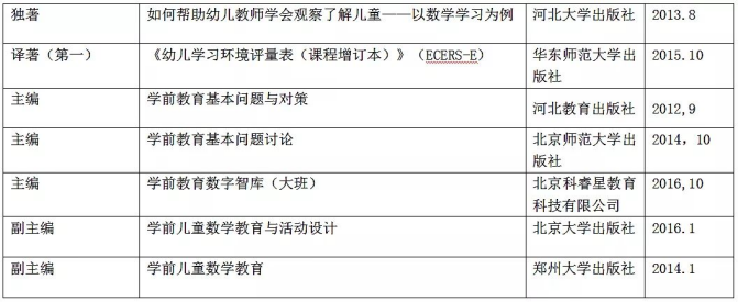 研究领域: 儿童数学学习与发展、教师专业发展、幼儿园课程建设
