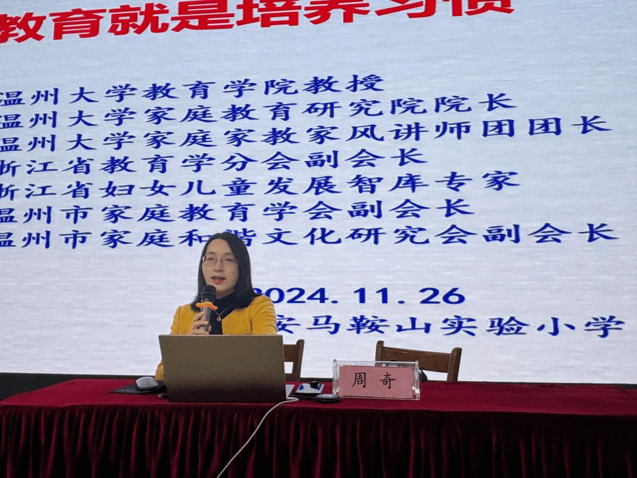 11月26、27日,我院周奇教授应邀为瑞安市马鞍山实验小学一二年级与三四年级学生家长分别开设《教育就是培养习惯》、《做好孩子的第一任老师》家庭教育讲座。