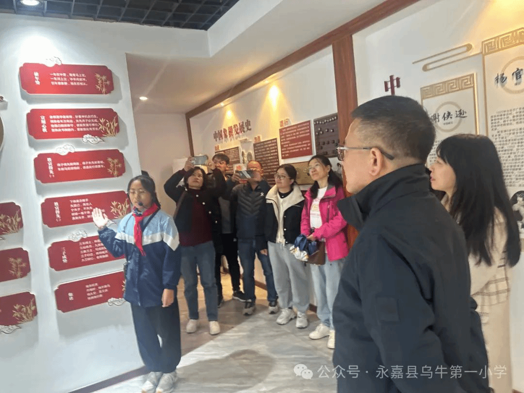乌牛镇第一小学党支部书记、校长胡晓忠向党员同志们介绍了学校的办学历史、生情特色和校园德育文化建设,并带领老师们参观了学校自行建设的中国象棋文化博物馆。博物馆巧妙地将爱国主义、传统文化、德育文化融入到传统体育竞技项目当中,设计布局独具匠心,展品内容育人意味浓厚,象棋育人模式特色鲜明,得到了同志们的一致好评。