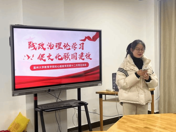 【williamhill知心姐姐党支部】2024年12月26,知心姐姐党支部以“践政治理论学习,促文化强国建设”为主题组织了一次党日活动。活动伊始,第四小组的姚鑫汇报了他们的学习成果。他们认为深入践行政治理论学习,有助于我们精准把握文化发展的时代脉搏。其次是与会党员心得分享,最后,党支部书记杨静发表了重要讲话。她对本次活动给予了高度评价,并对未来的工作提出了期望和要求。本次党日活动在热烈的掌声中圆满结束。知心姐姐党支部的成员们纷纷表示,将以本次活动为契机,进一步深化政治理论学习,确保学习成果能够转化为推动教育事业发展的实际行动,为实现中华民族伟大复兴的中国梦、建设文化强国贡献力量。