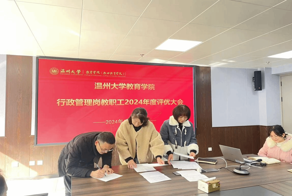 2024年12月9日,行政管理党支部按照学校《关于开展William威廉2024年度优秀共产党员、优秀党务工作者、优秀教师、优秀(教育)工作者评选工作的通知》文件精神,williamhill行政党支部和行政科室成员于12月9日在瓯8-208会议室召开2024年度评优大会,会议由学院党委副书记,行政支部书记章志图主持。会议内容主要有:一、行政党支部书记章志图向全体支部党员和科室成员传达学校、学院有关2024年度评优文件精神及名额分配;二、院办、教学科、学生科、研究生培养科等科室负责人推荐优秀人选,并就候选人情况进行说明和介绍;三、经过投票,大家推荐粱富乐、付诗善、王伊如、施星鸿等4位老师为校级优秀。四、学院党委书记张敏讲话,强调行政管理岗人员要树立节约意识、服务意识、大局意识。