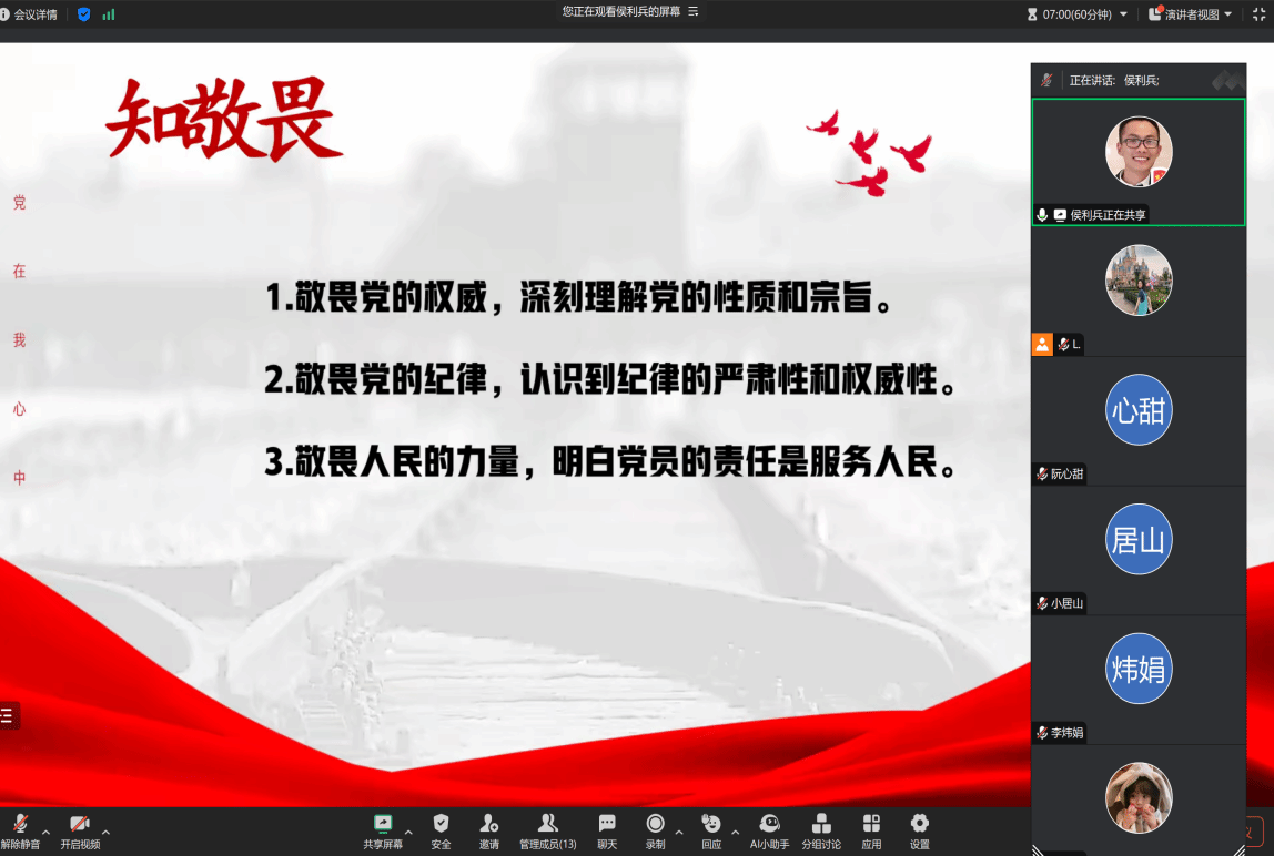 【williamhill第四学生党支部】2024年12月22日,williamhill第四学生党支部为深入学习习近平总书记在2021年秋季学期中央党校(国家行政学院)中青年干部培训班开班式上的讲话:“干部一定要知敬畏、存戒惧、守底线,敬畏党、敬畏人民、敬畏法纪”,现以“如何知敬畏、存戒惧、守底线,遵守党纪党规”为主题开展12月书记上党课。支部书记侯利兵从四个方面为支部的党员同志们展开介绍:知敬畏、存戒惧、守底线、遵守党纪党规的具体行动。在聆听完书记的党课后,同志们深有感触,纷纷踊跃发表自己心中所想。赵乐鸯同志提出:作为新时代的大学生,我们从要老一辈身上汲取力量,将党的精神内化于心、外化于行。蔡淑婷同志认为:全面从严治党永远在路上,党的自我革命永远在路上。