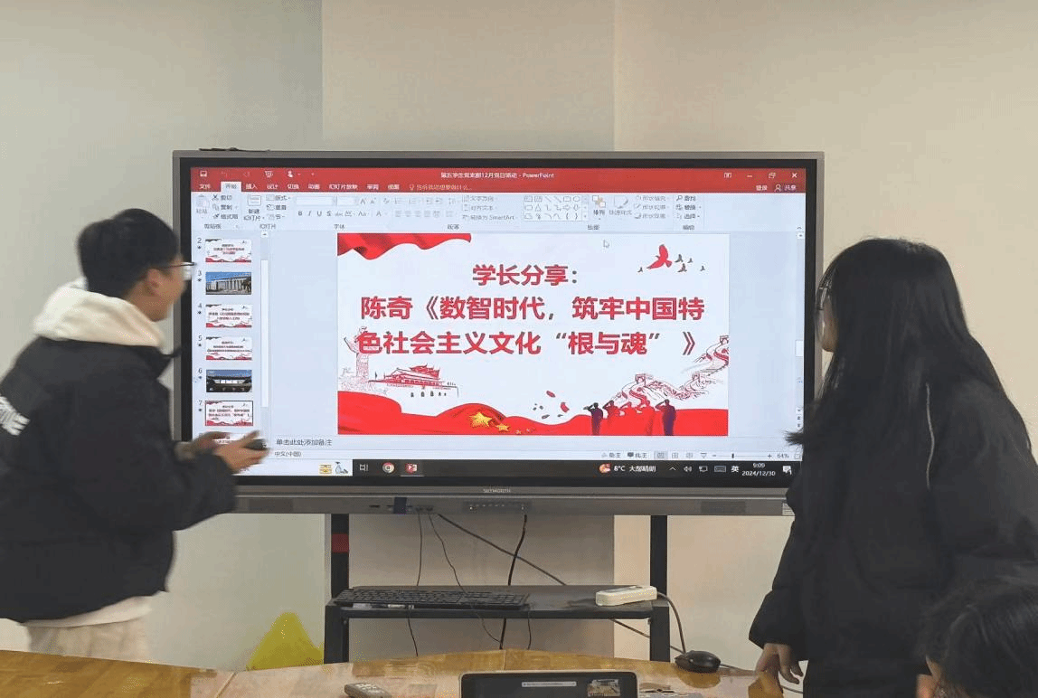 【williamhill第五学生党支部】2024年12月30日,William威廉williamhill第五学生党支部组织了“深入学习习近平文化思想与实践”主题党日活动。此次活动采取视频学习、学长学习分享相结合的多元形式,由党支部书记助理高慧佳同志主持,第五学生党支部的全体党员均参与了此次活动。活动伊始,全体党员共同观看了“习言道 | 习近平这样谈‘文化强国’”的视频资料。随后,缪涵雷学长围绕《文化强国思想如何融入教学育人工作》这一主题进行了分享汇报。接着,全体党员共同观看“锚定建成文化强国战略目标 不断发展新时代中国特色社会主义文化”视频,最后,陈奇学长以《数智时代,筑牢中国特色社会主义文化“根与魂”》为主题进行分享。活动结束后,党员们进行总结交流。