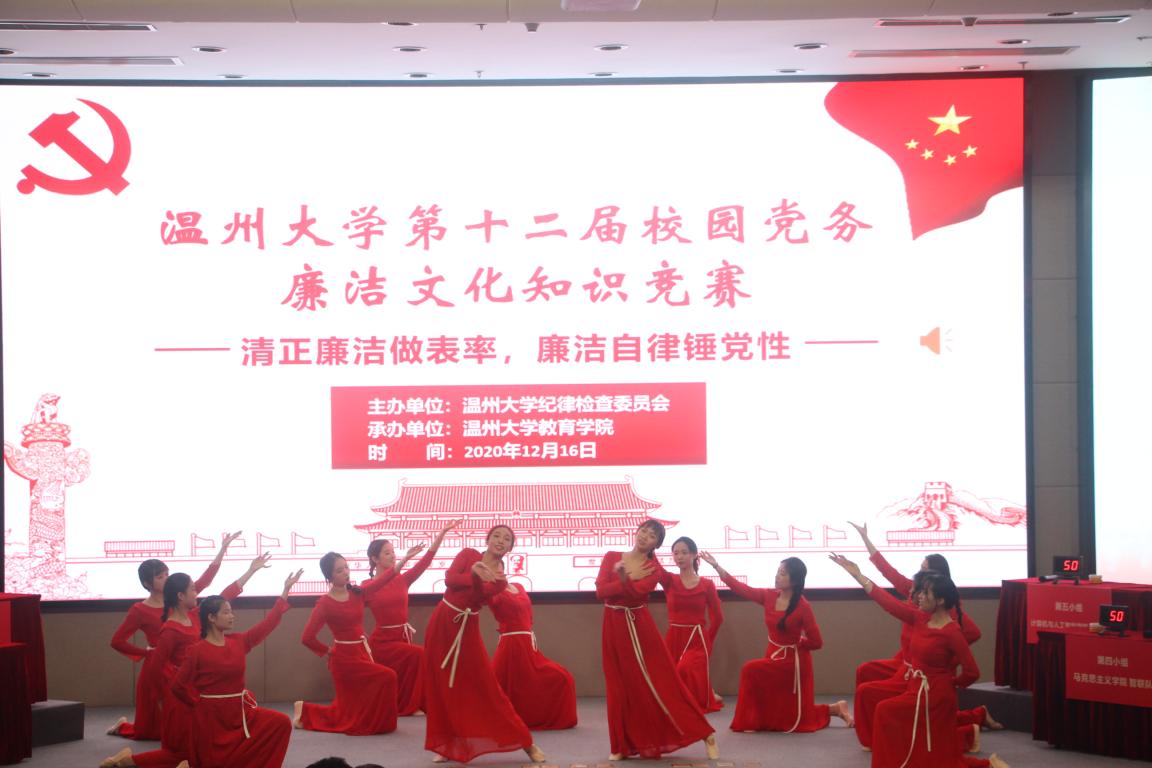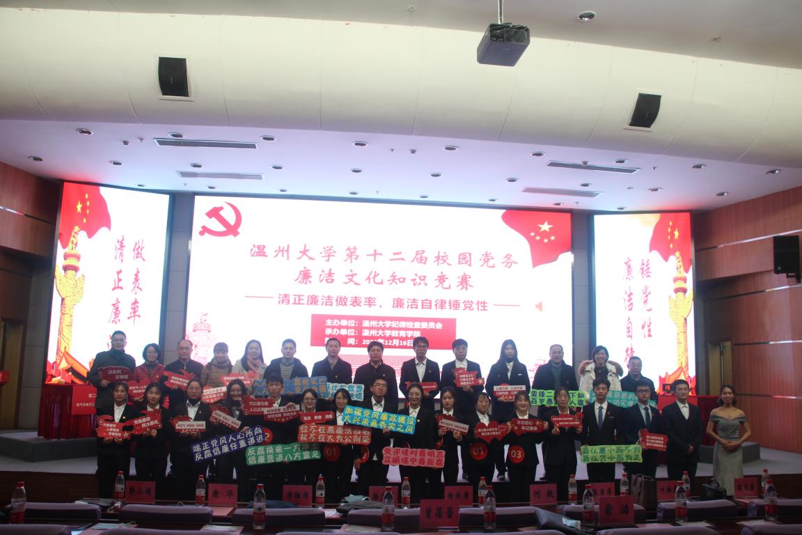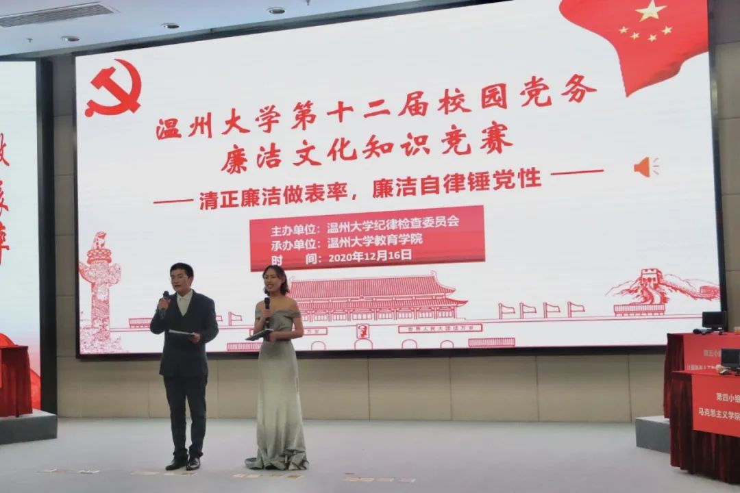 为深入贯彻落实党的十九届五中全会精神,推进“清廉温大”建设,营造风清气正的校园廉洁文化,进一步丰富“罗山清风·第十二届校园廉洁文化月”活动内容,第十二届校园党务廉洁文化知识竞赛在育英图书馆二楼报告厅顺利举行。