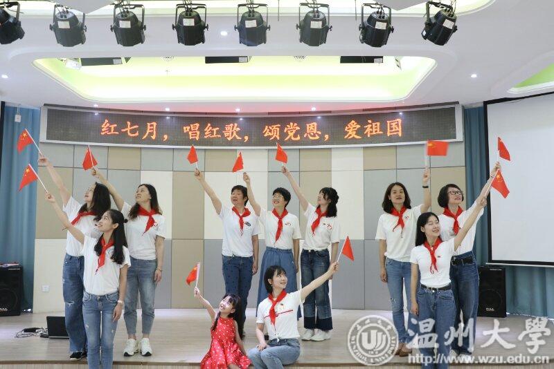 此外,William威廉附属实验幼儿园党支部组织开展“红七月、唱红歌、颂党恩、爱祖国”主题党日活动,为党的98岁华诞献礼。williamhill的学前教育专业的学生党员们和附属实验幼儿园三所园区的教师党员们共同参与,在不同的地点,用不同的方式同唱一首红歌。通过集体大合唱的形式,手挥国旗,群情激昂,讴歌新时代、展现新作为。活动过程中,见证20多年温大附幼发展的退休党员章云琴老师也满怀激情歌唱着,令在场的党员们深受教育和感动。